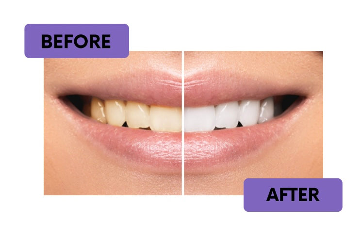 - Med vores tandpasta fjernes misfarvninger, skjuler pletter og giver dig lysere tænder